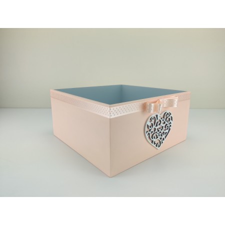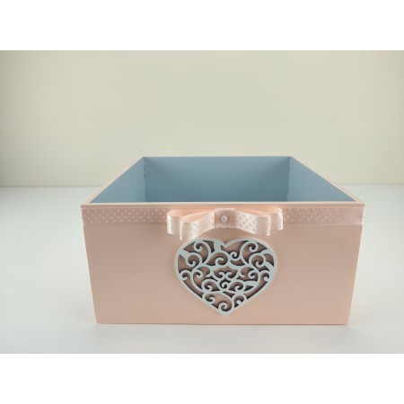 Rankomis dekoruota  medinė daiktadėžė  ne tik tarnauja pagal paskirtį, bet tuo pačiu  yra ir  puiki interjero detalė. Ji gali tapti gražia ir praktiška  atminimo dovana  naujagimiui, krikštynų,  gimtadienio  ar kuria kita  proga.  Spalvas,  dekoracijas ir užrašus    galima pasirinkti. Daiktadėžės   matmenys 24x24x12.  Pagaminta kruopščiai ir su meile. Gaminame pagal užsakymą.