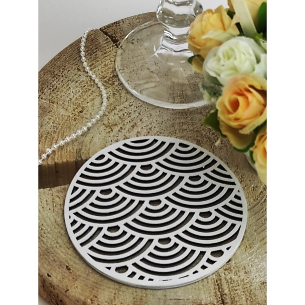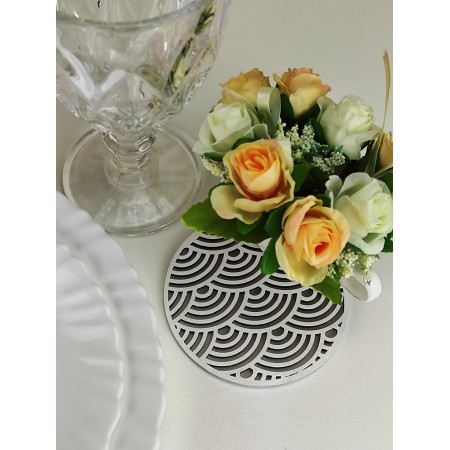 Stalo dekoracija, kuri gali būti naudojama ir kaip padėkliukas kavos ar arbatos puodeliui. Skersmuo 10 cm. Galimi kitų spalvų variantai. Gaminame pagal užsakymą.