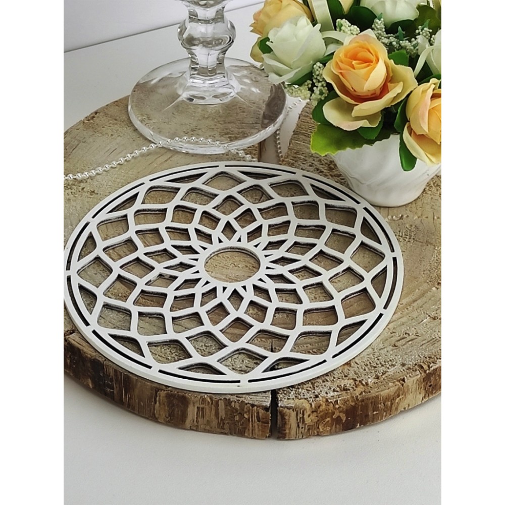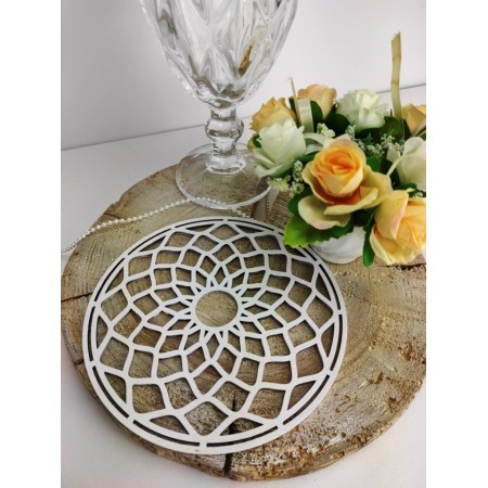 Stalo dekoracija, kuri gali būti naudojama ir kaip padėkliukas kavos ar arbatos puodeliui. Skersmuo 15 cm. Galimi kitų spalvų variantai. Gaminame pagal užsakymą.