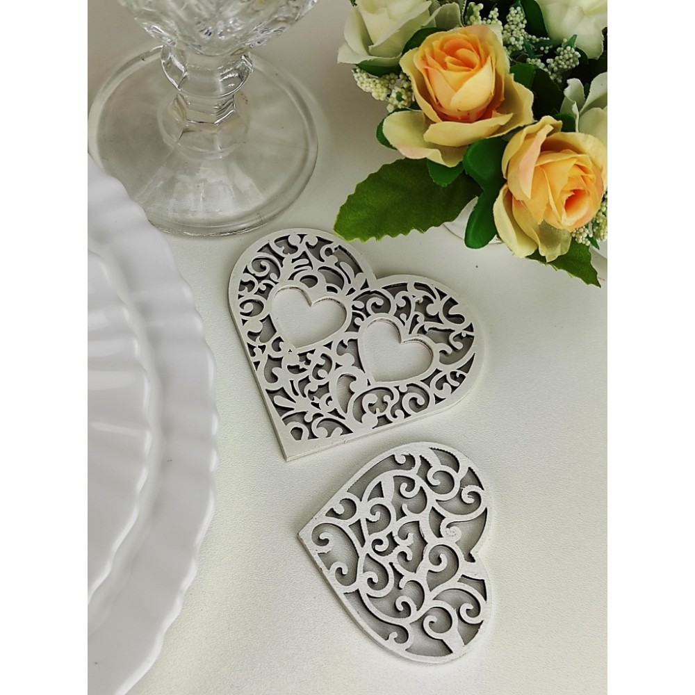Stalo dekoracija ,,Dvi širdutės" gali ne tik papuošti Jūsų šventinį stalą, bet ir tapti miela atminimo dovanėle svečiams. Matmenys 8cmx9cm. Galimi kiti spalvų variantai. Gaminame pagal iužsakymą.