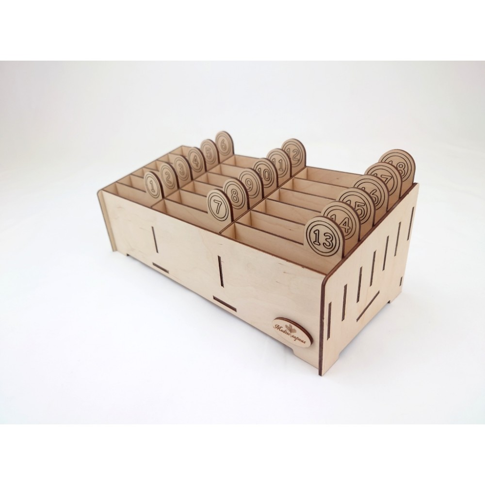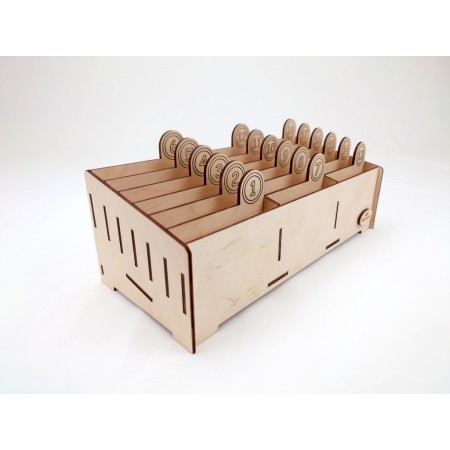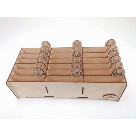 Telefonų dėžutė, turinti 18 atskirų sunumeruotų skyrelių, skirta mobiliesiems telefonams laikyti pamokų metu, kad ugdymo(si) procesas būtų sklandus ir niekam nekiltų pagunda žvilgčioti į savo išmanųjį. Spalvas ir užrašus galima pasirinkti. Gaminame pagal užsakymą.